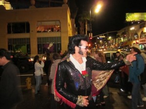 (He’s the one looking like he knows how dashing it is to be Robert Downey Jr.). I didn’t get to a swanky LA party, but I did get to see Elvis working the crowd.