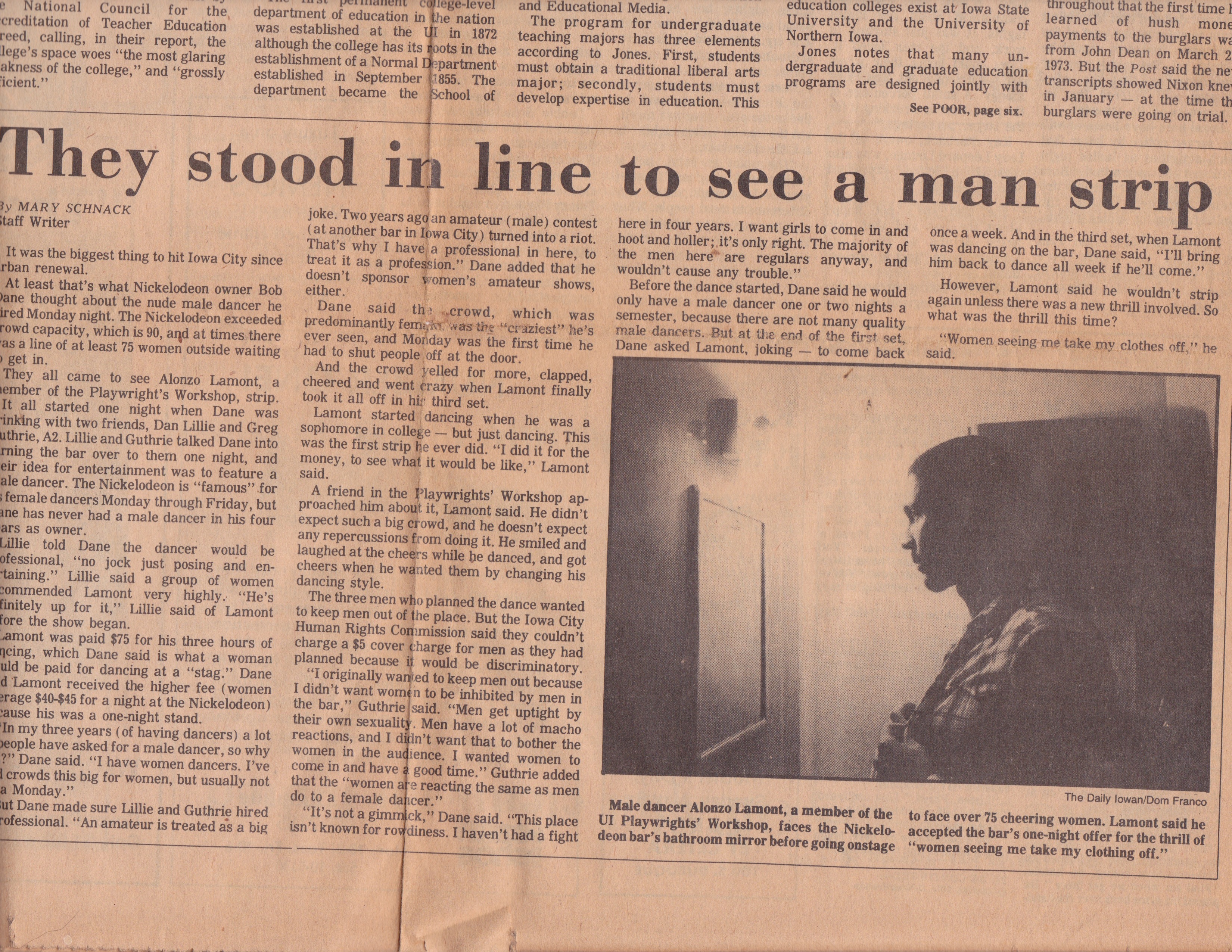 Honestly, I’m just happy to have finished it all. Reading the play out loud let me know that, while this is not the final draft by any means, it’s still in design and storytelling the play I had in my head. And storytelling it is indeed. I will need a capable actor to pull this off. But I think once someone can commit to the effort (it’s a complete monologue), the rewards will be massive. It’s definitely got some Spaulding Gray and a bit of Anna Deveare Smith. As you may recall, “B-Side Man explores my adventure into erotic dancing in Iowa City, Iowa. It’s not ALL the play is about, by any stretch, but it’s in there, ladies and gents.