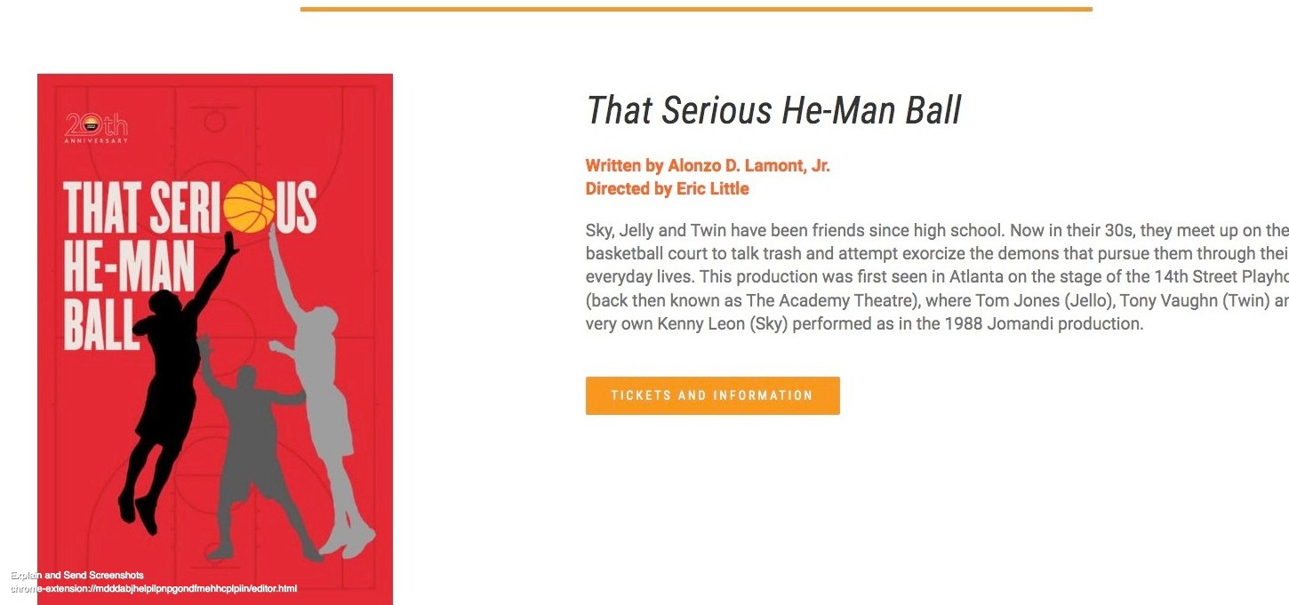 Sharing good news never gets old! Sharing good news is ALWAYS a freakin joy! “That Serious He-Man Ball” will be performed in Atlanta at Kenny Leon’s True Colors Theatre Company this fall. Dates are Sept. 27th – Oct. 23rd. 22 performances, my friends.