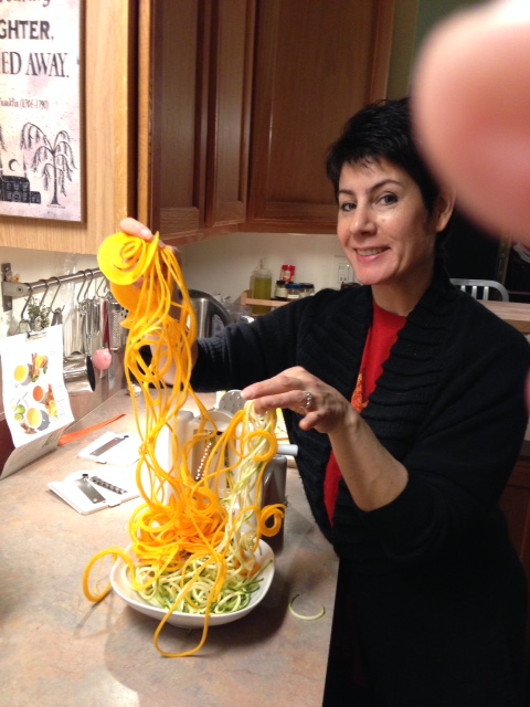 Now, on the same day we had spiral zucchini with shrimp. As any Paleo Pro will tell ya, spiral zukes are a smarty-smart substitute pasta. You just saute it for a bit, and presto. But I’m not the spiralizer, Wiffe Nicole is. And truth be told, she does all the “heavy lifting” — if you get my drift.I dabble a little here and there. It was Nicole who brought the Spiralizer into our world. And next time I’ll have to show a picture or two showing her bone broth making skills.